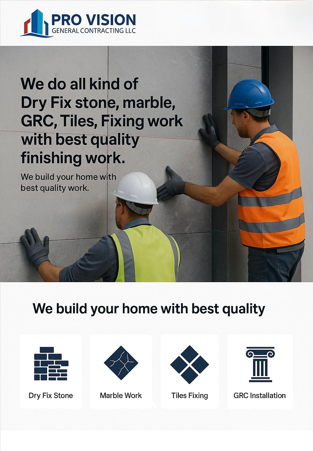 We are a team of highly skilled professionals offering comprehensive solutions in dry fixing systems, marble and tile installation, and gypsum wall and ceiling works. Our expertise lies in transforming raw spaces into elegant environments—built to last and designed to impress. Using only the highest quality materials and proven fixing techniques, we ensure every panel, tile, and slab is perfectly placed. Our reputation is built on trust, durability, and consistent client satisfaction across residential and commercial projects.